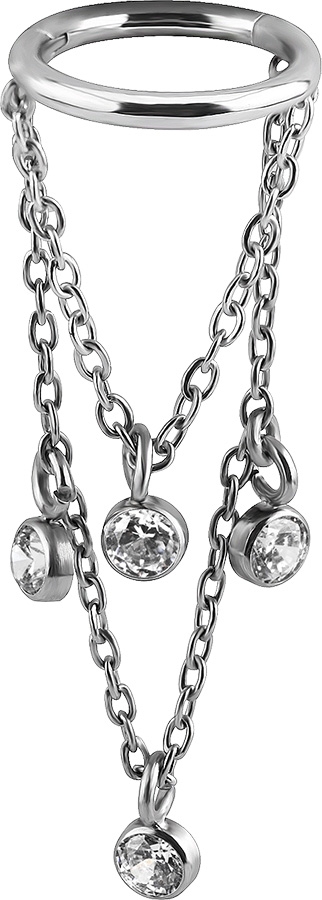 SS 316 CLICKER WITH JEWELLED DANGLE CHAINS 1,2x8mm WH