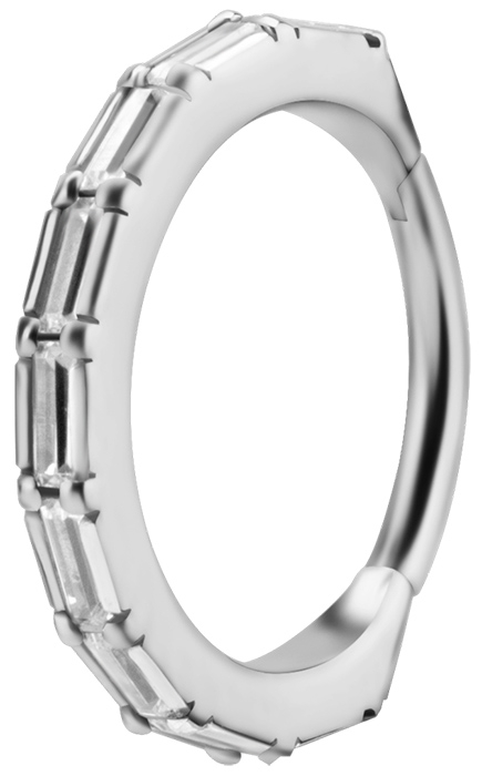 SS 316 HINGED RING SET W. BAGUETTE ZIRCONIA 1,2x12mm WH